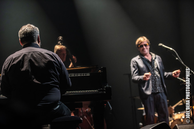 Le 4 décembre marquait la fin du Charabia Festival 2021. La veille, le concert de clôture, assuré par Thomas Dutronc, se jouait à la Comédie. Aux premières lueurs des poursuites, une voix féminine dans l’assistance laisse échapper : « Haan, c’est le même ! ». Oui, on s’y tromperait ! Tout de noir vêtu, lunettes solaires aux contours rouges, ses mèches brunes indisciplinées, indéniablement sa silhouette évoque celle de son paternel. L’allure de son père, les yeux bleus de sa mère, le fils du couple des années Yé-yé ne peut renier ses origines. Au-delà d’un héritage physique certain, le chanteur sait s’entourer. A ses côtés, sur la scène de La Comédie, ce n’est pas moins de huit musiciens qui l’accompagnent. Le chanteur rompt la noirceur silencieuse de la salle de spectacle avec « C’est si bon », puis « Plus je t’embrasse (plus j’aime t’embrasser) », une adaptation française de la chanson « Heart of My Heart » de 1954, en charmeur qu’il est.